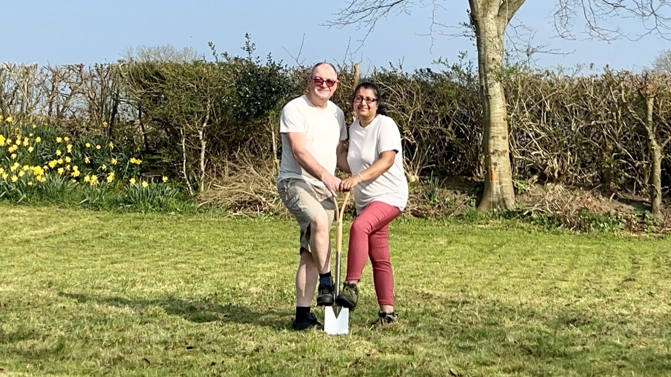 We broke ground in March 2022 with our chrome plated spade which was given to us as a Wedding gift and kept for this special event.