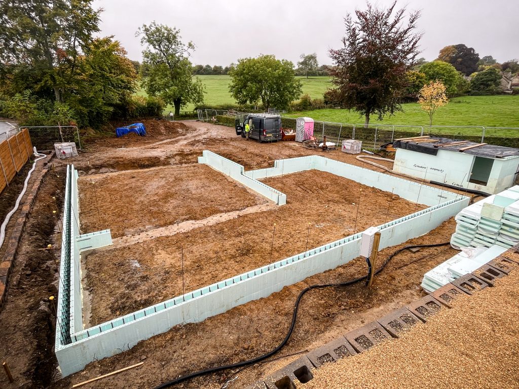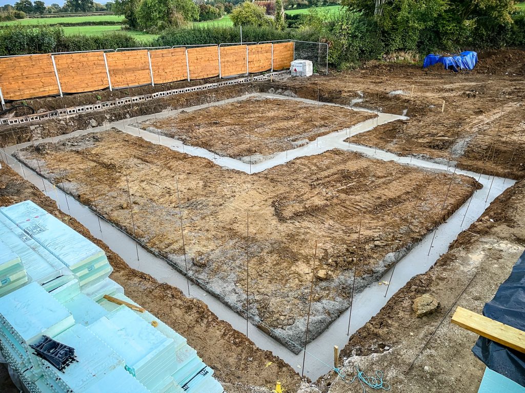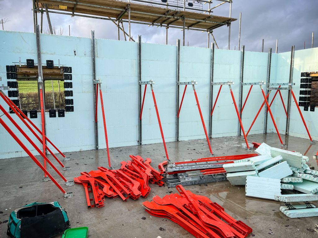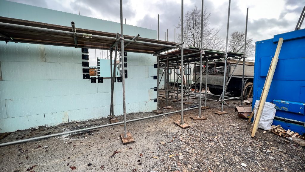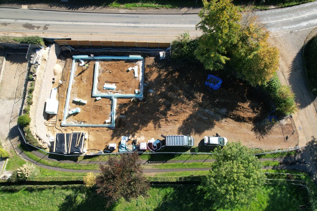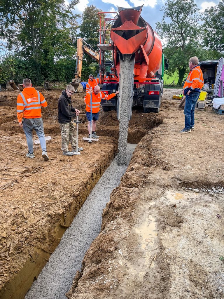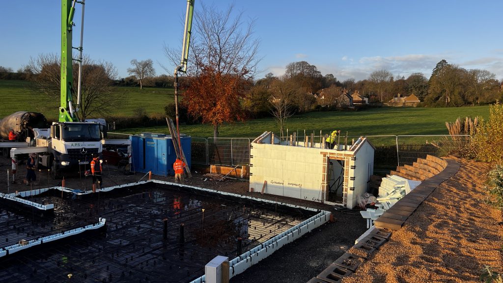 Friday 10th Feb 2023 – The big pour day… 4 loads later and all of the ground floor walls are now full of concrete. Here’s some photos from the day from the air and on the ground.
