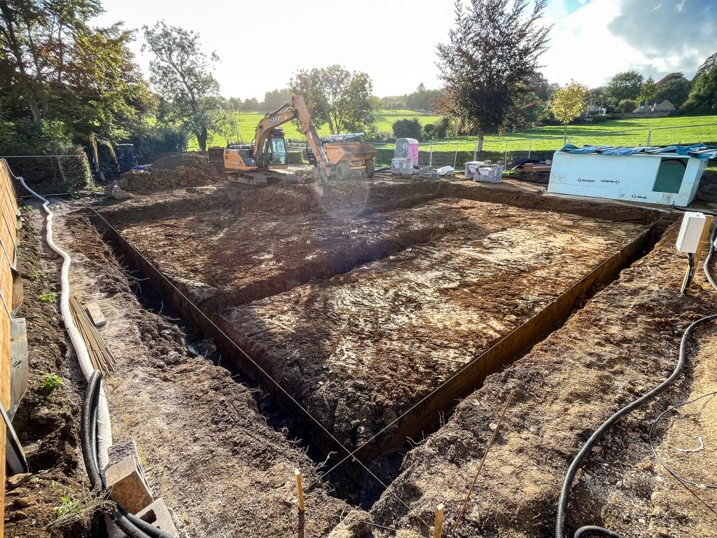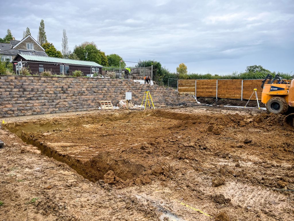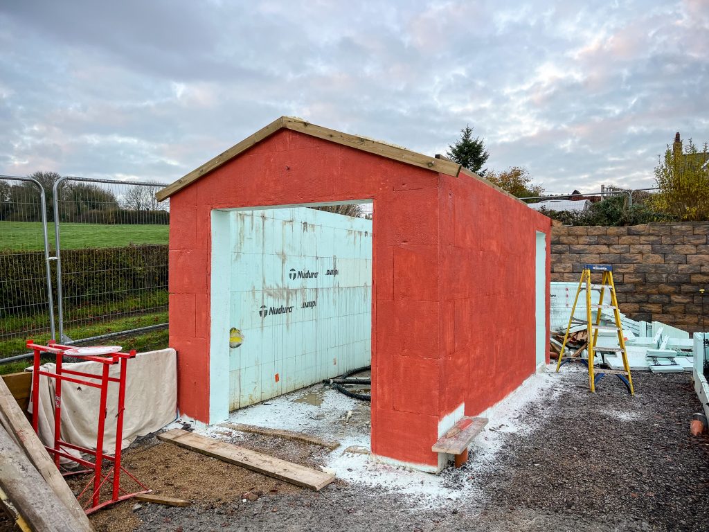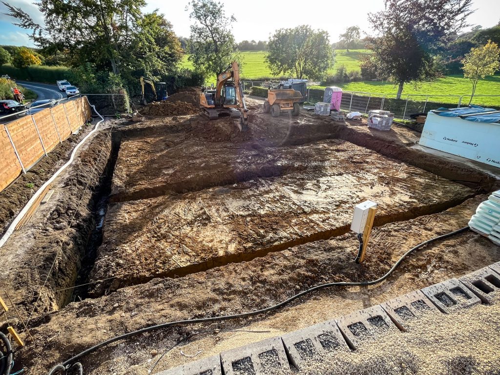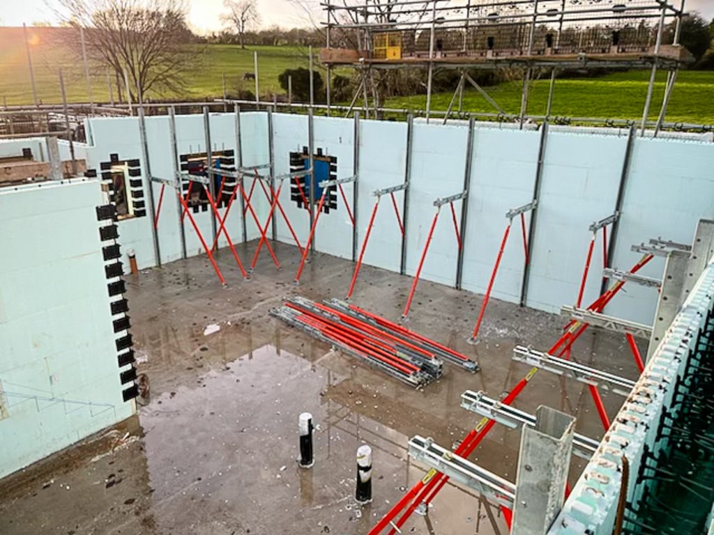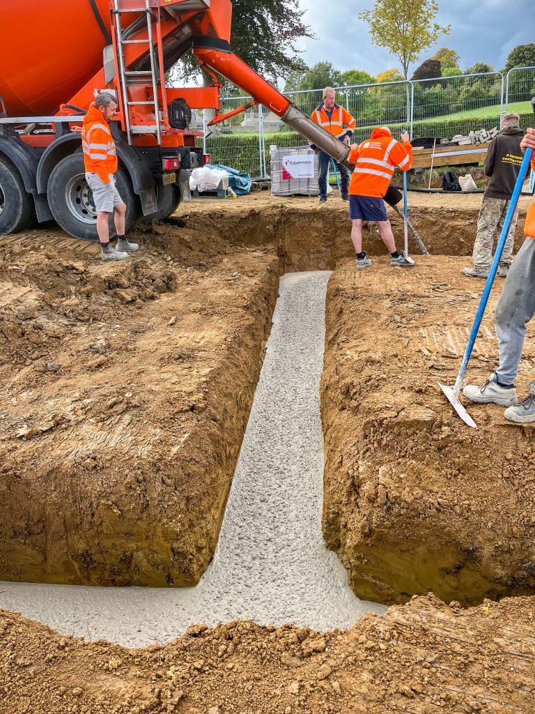 Friday 10th Feb 2023 – The big pour day… 4 loads later and all of the ground floor walls are now full of concrete. Here’s some photos from the day from the air and on the ground.