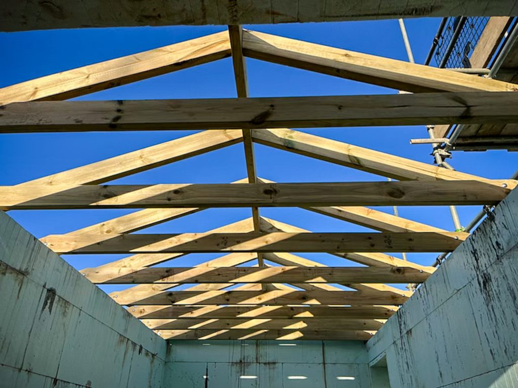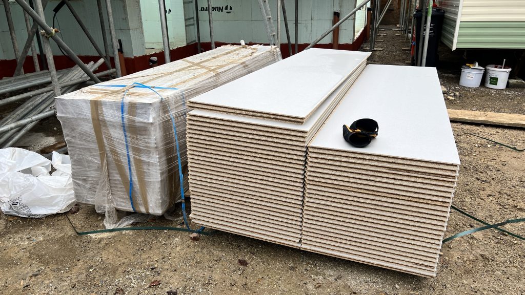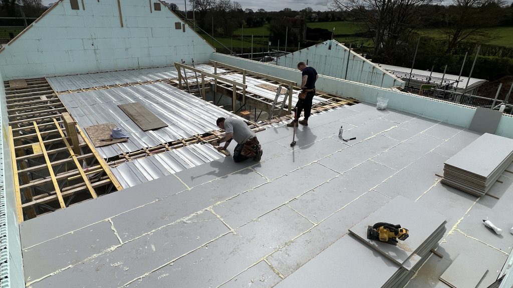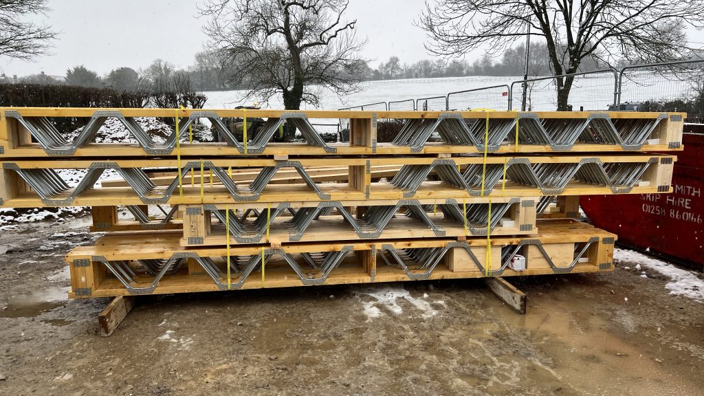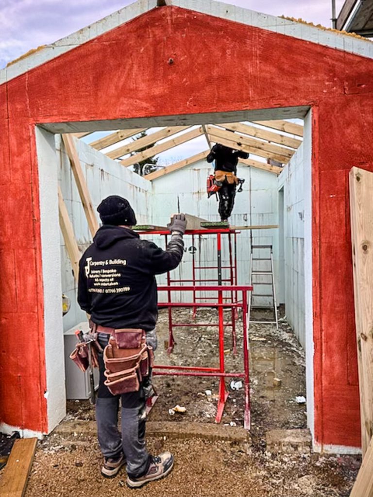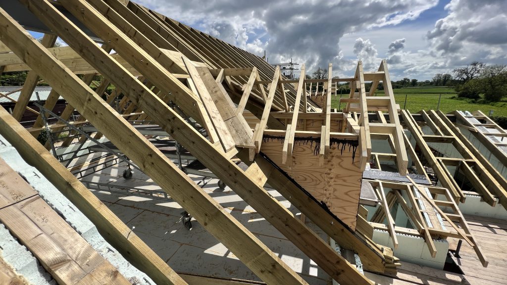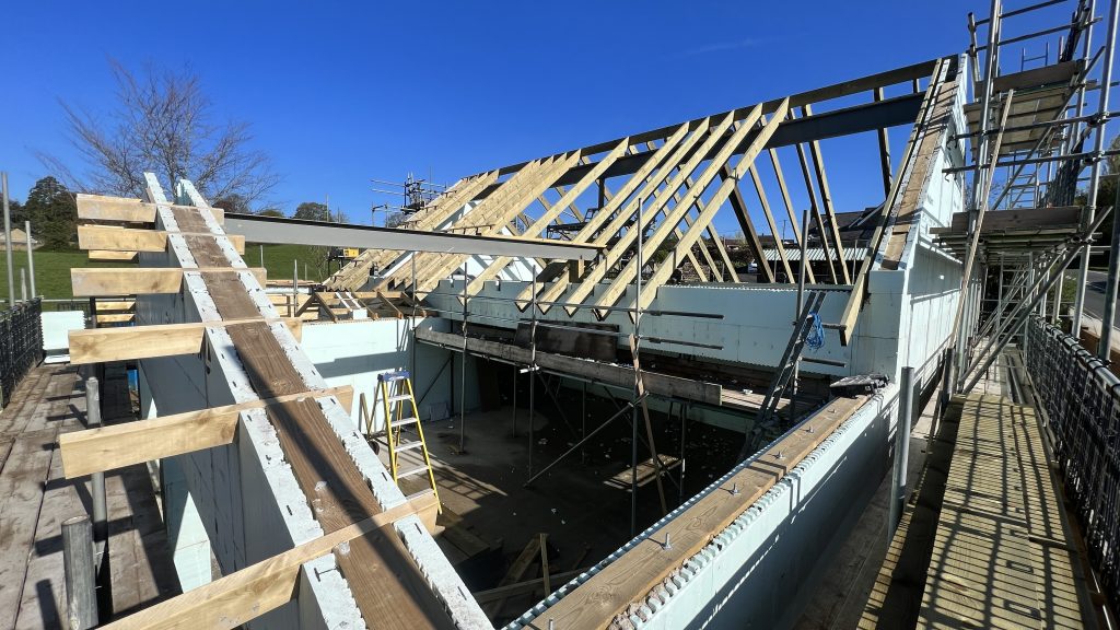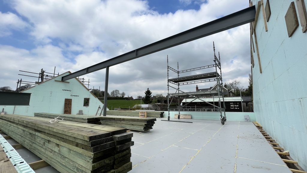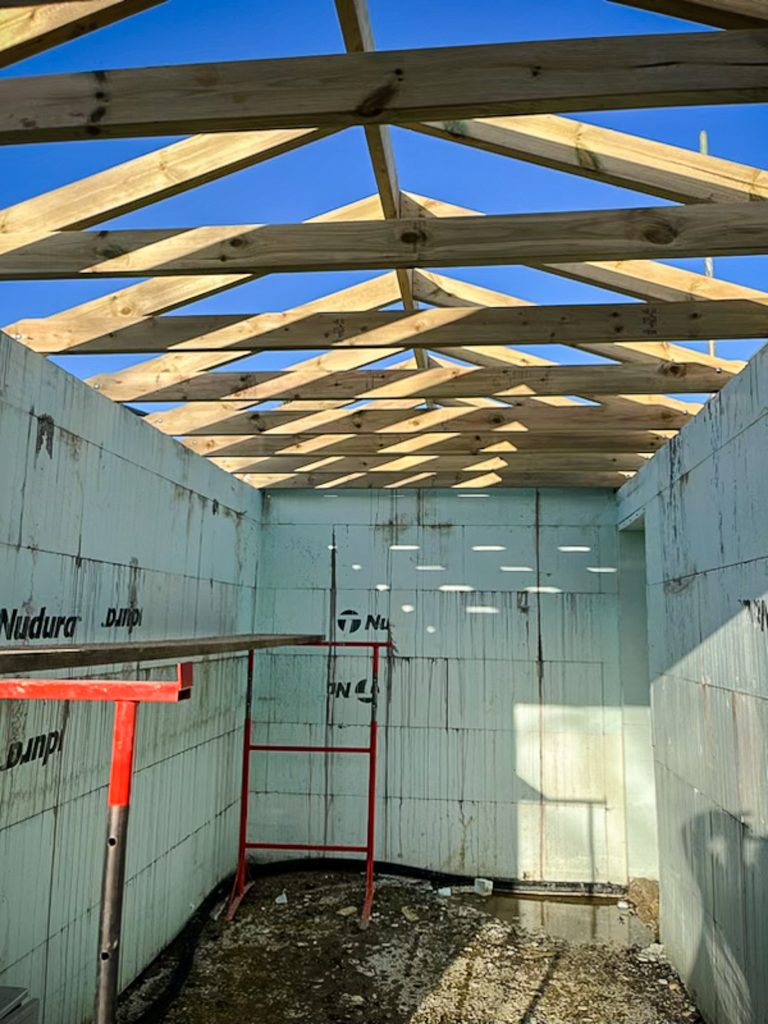 The floor joists are all now fitted. Here’s a couple of videos showing the joists in place and Mark talking through the room layouts for the two floors.